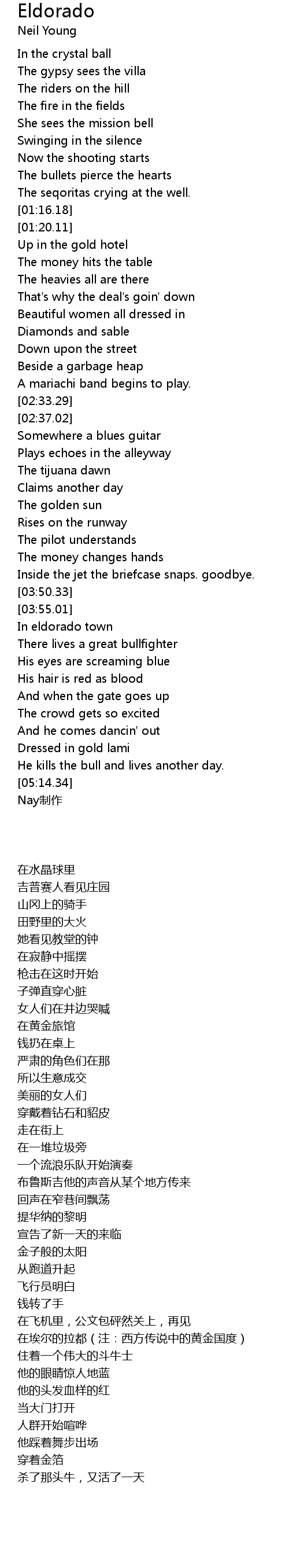 | [04:29.25] | In eldorado town |