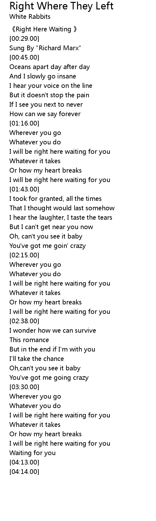 | [00:00.00] | 《Right Here Waiting 》 |