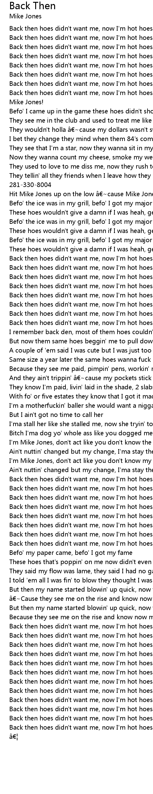 | Hit Mike Jones up on the low cause Mike Jones about to blow | |