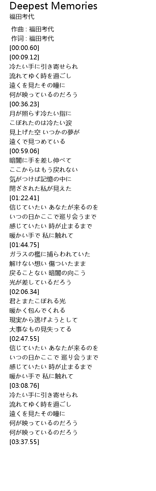 | [02:58.41] | 感じていたい 時が止まるまで |