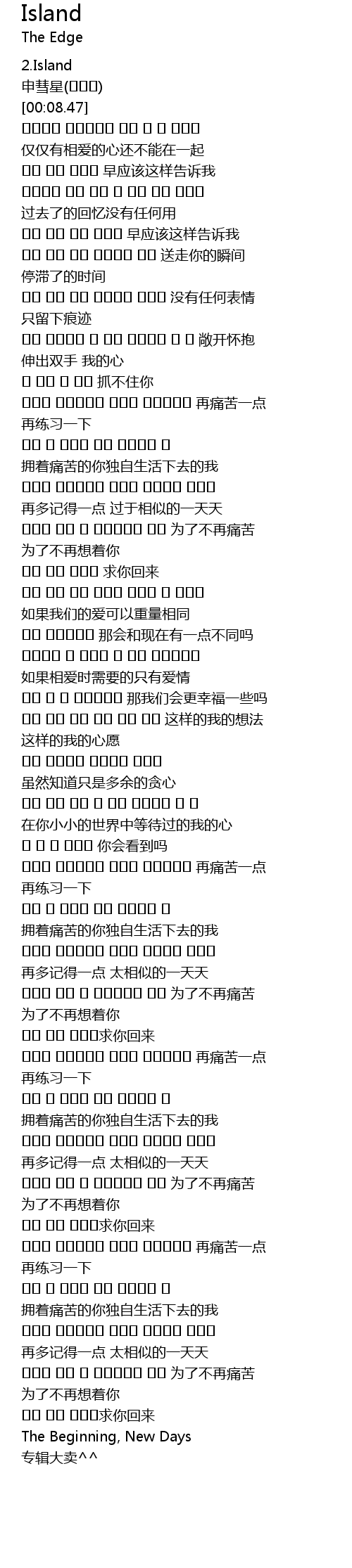 | [01:55.81] | 작은 너의 세상 그 속에 기다리던 내 맘 在你小小的世界中等待过的我的心 |
