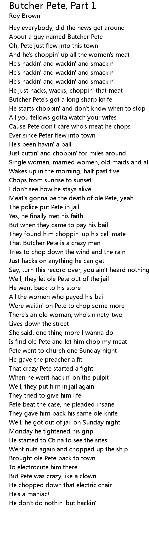 Butcher Pete's got a long sharp knife |