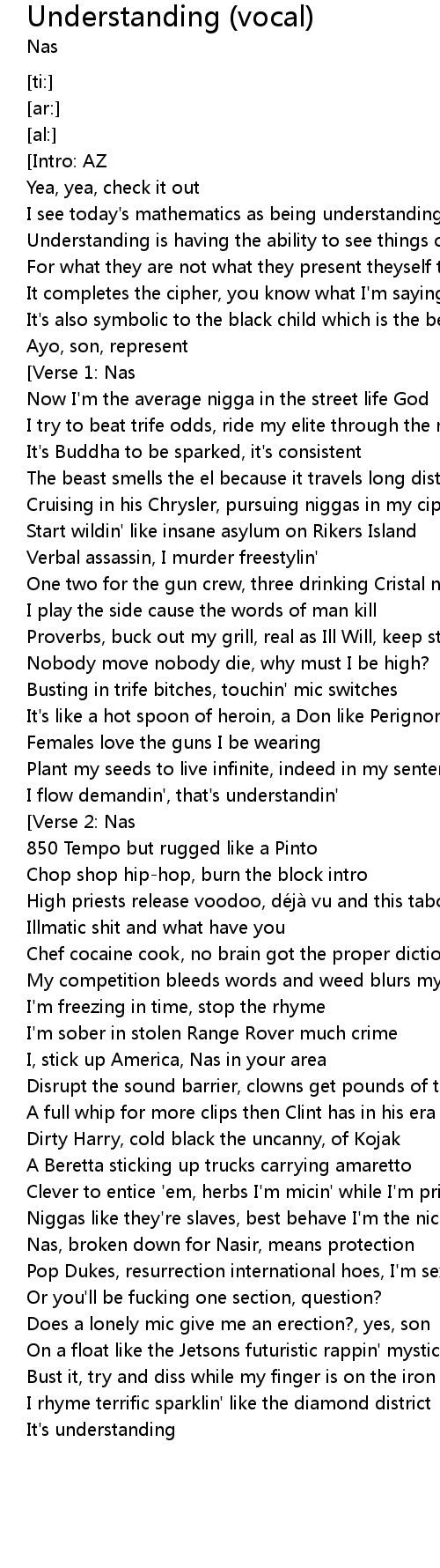 | [02:07.72] | Nas, broken down for Nasir, means protection |