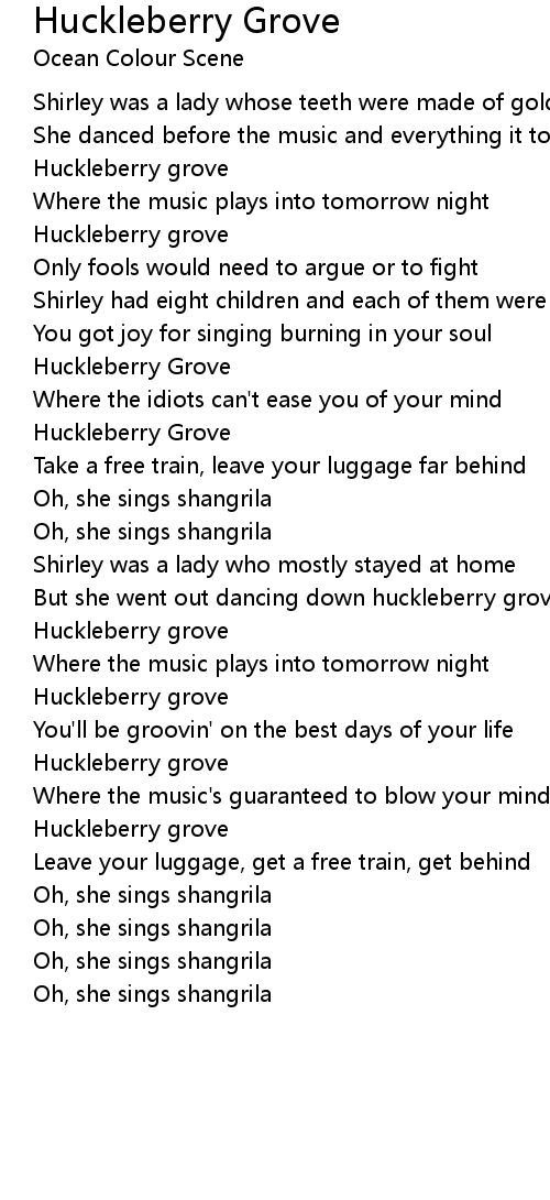 But she went out dancing down huckleberry grove |