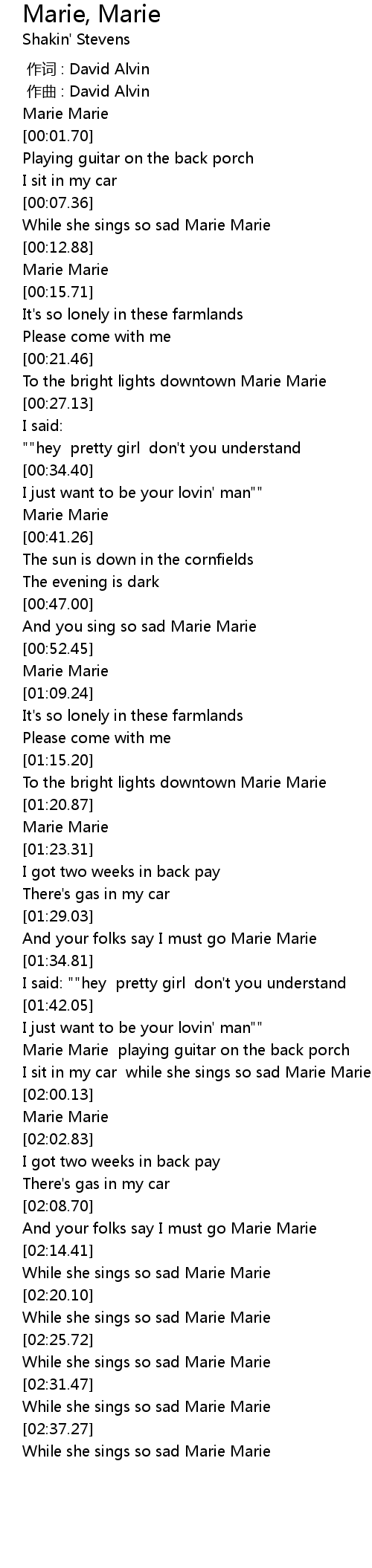 | [02:27.55] | While she sings so sad Marie Marie |