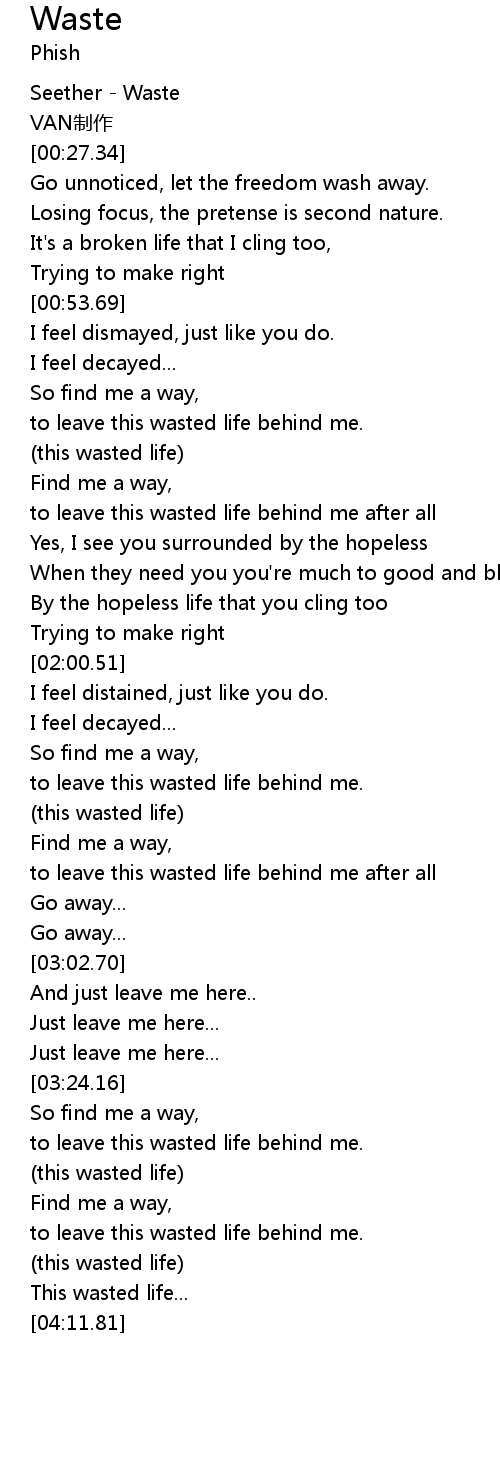 | [00:29.34] | Go unnoticed, let the freedom wash away. |