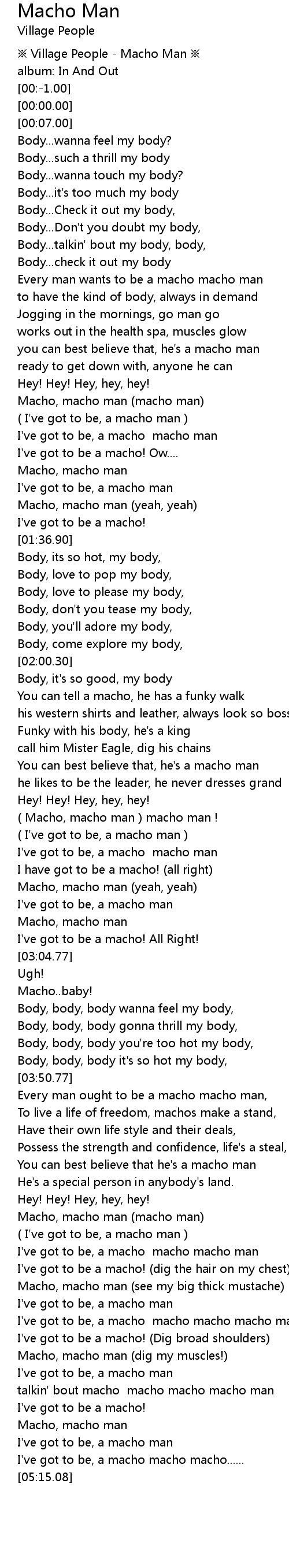 | [04:20.60] | ( I've got to be, a macho man ) |