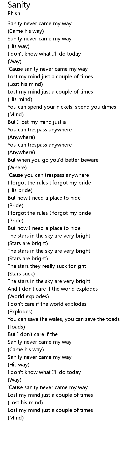 Sanity never came my way |
