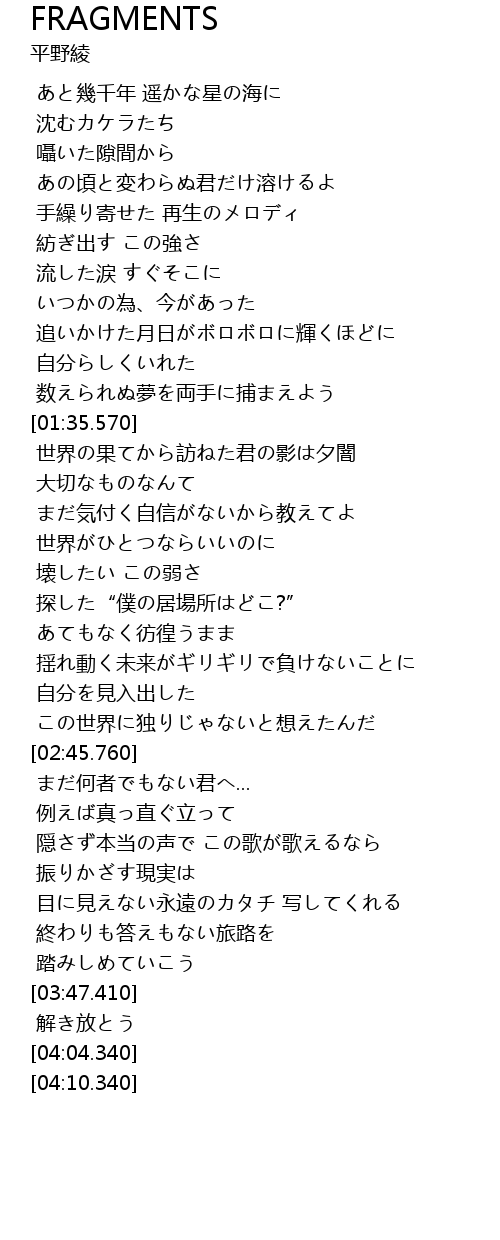 | [02:17.840] | 探した“僕の居場所はどこ?” |
