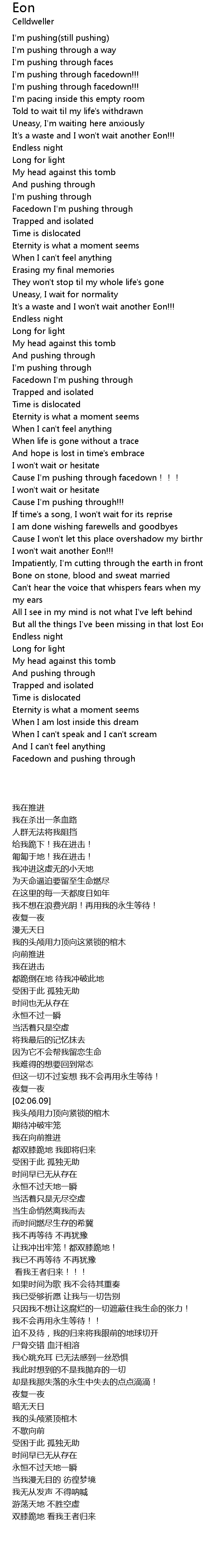 | [02:09.13] | 我头颅用力顶向紧锁的棺木 |