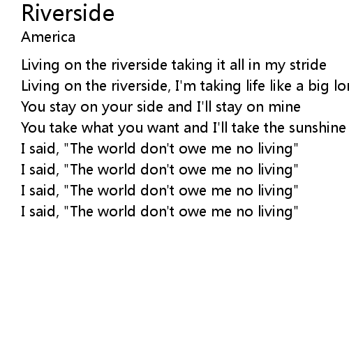 | Living on the riverside, I'm taking life like a big long ride | |