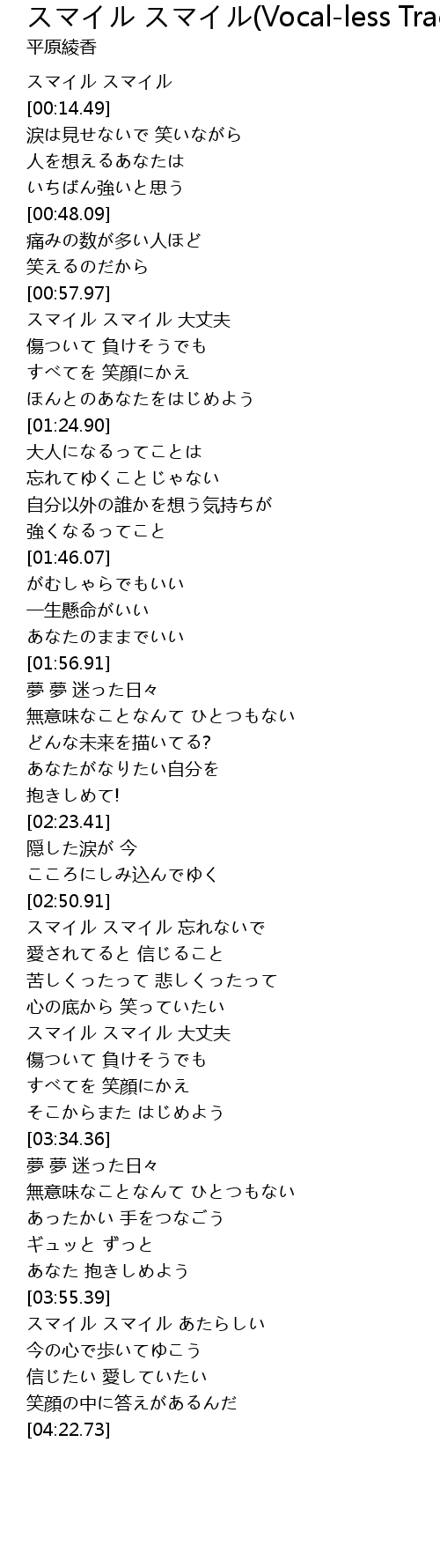 | [00:59.17] | スマイル スマイル 大丈夫 |