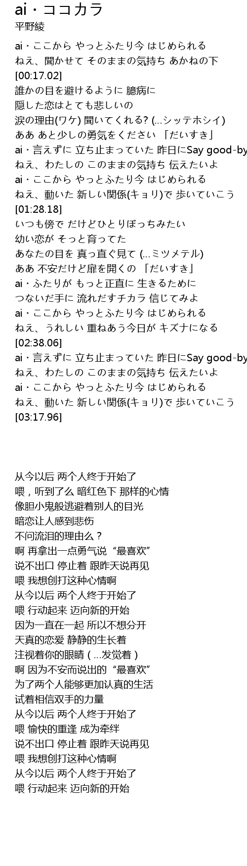 | [02:21.43] | ai・ここから やっとふたり今 はじめられる |