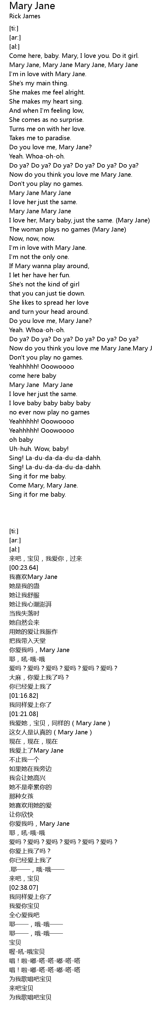 | [00:23.64] | Mary Jane, Mary Jane Mary Jane, Mary Jane |