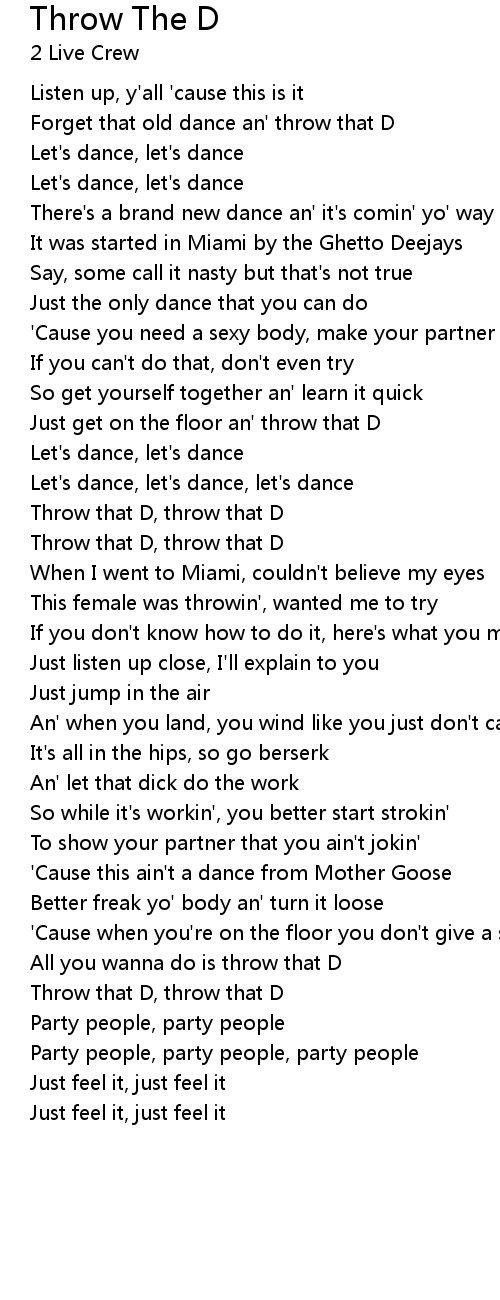Just get on the floor an' throw that D |