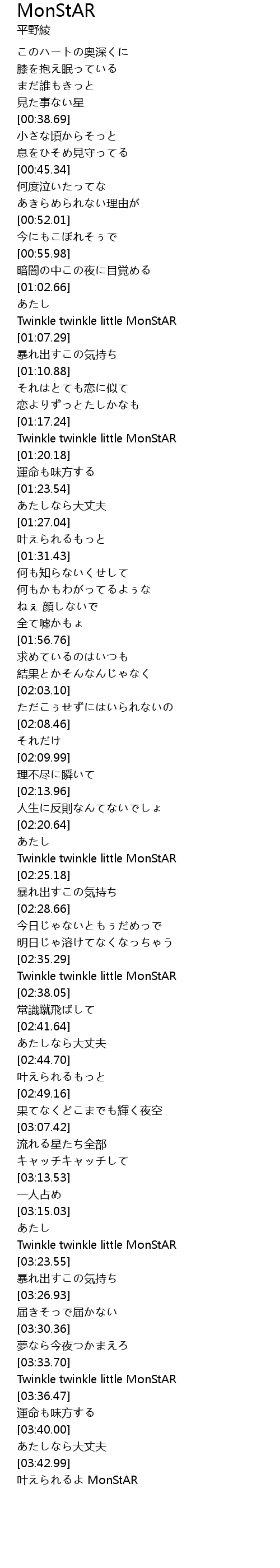 | [03:34.24] | Twinkle twinkle little MonStAR |