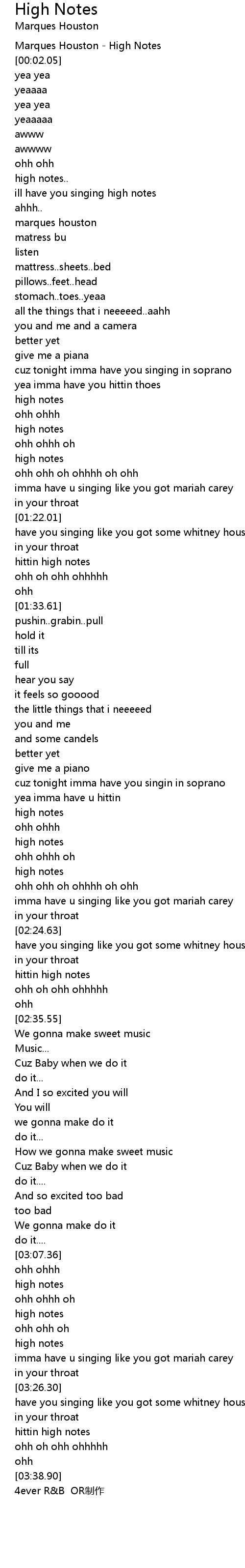 | [00:01.13] | Marques Houston High Notes |
