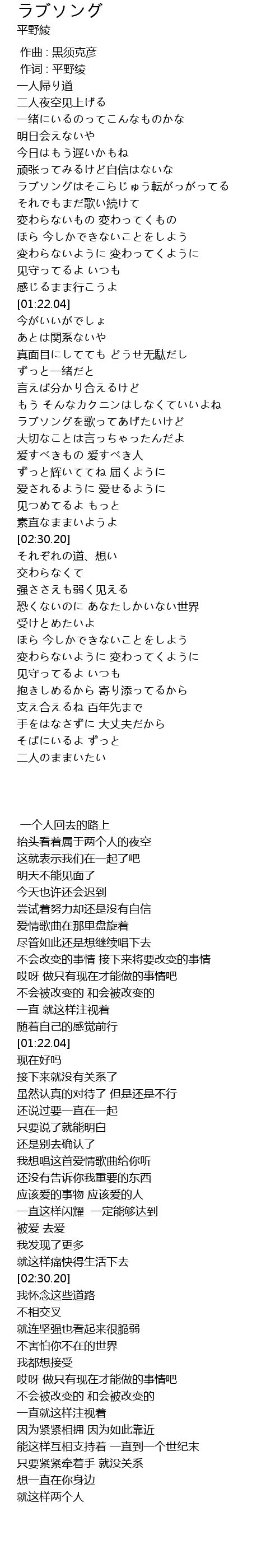 | [01:52.59] | ラブソングを歌ってあげたいけど |