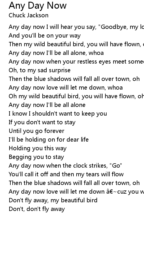 | Any day now love will let me down cuz you won' t be around | |
