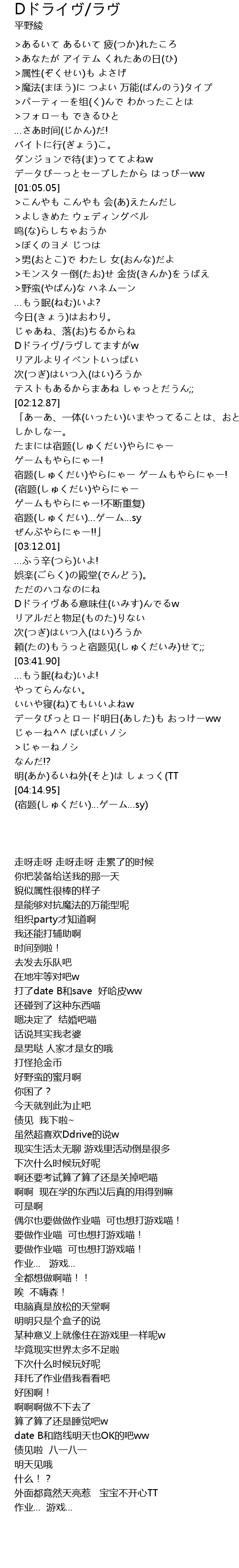 | [03:20.57] | Dドライヴある意味住(いみす)んでるw |