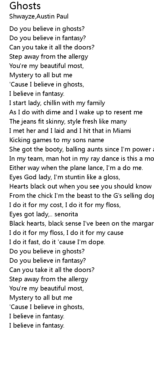 'Cause I believe in ghosts, |
