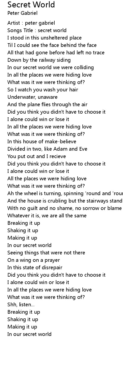 | Songs Title: secret world | |