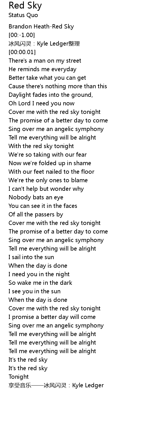 | [03:02.20] | Cover me with the red sky tonight |