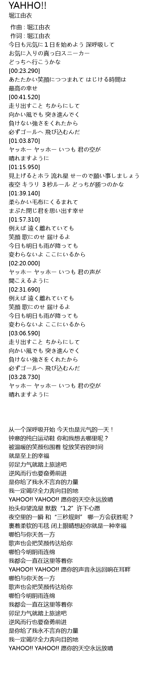 | [03:29.070] | YAHOO!! YAHOO!! 愿你的天空永远放晴 |