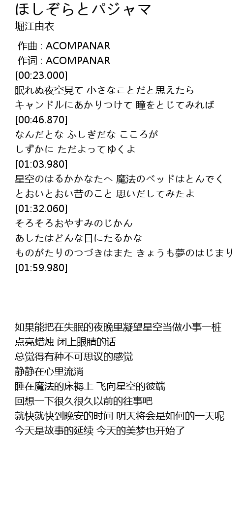 | 歌曲 | ほしぞらとパジャマ |
