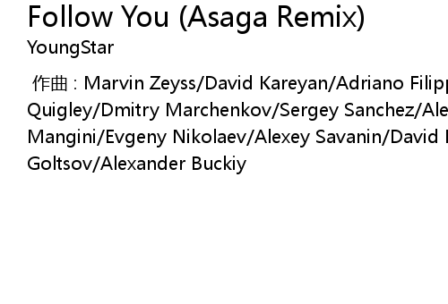 | [00:00.000] | 作曲 : Marvin Zeyss/David Kareyan/Adriano Filippucci/Neil Quigley/Dmitry Marchenkov/Sergey Sanchez/Alexander Malyutin/Francesco Mangini/Evgeny Nikolaev/Alexey Savanin/David Patvakanian/Pavel Losev/Maxim Goltsov/Alexander Buckiy |