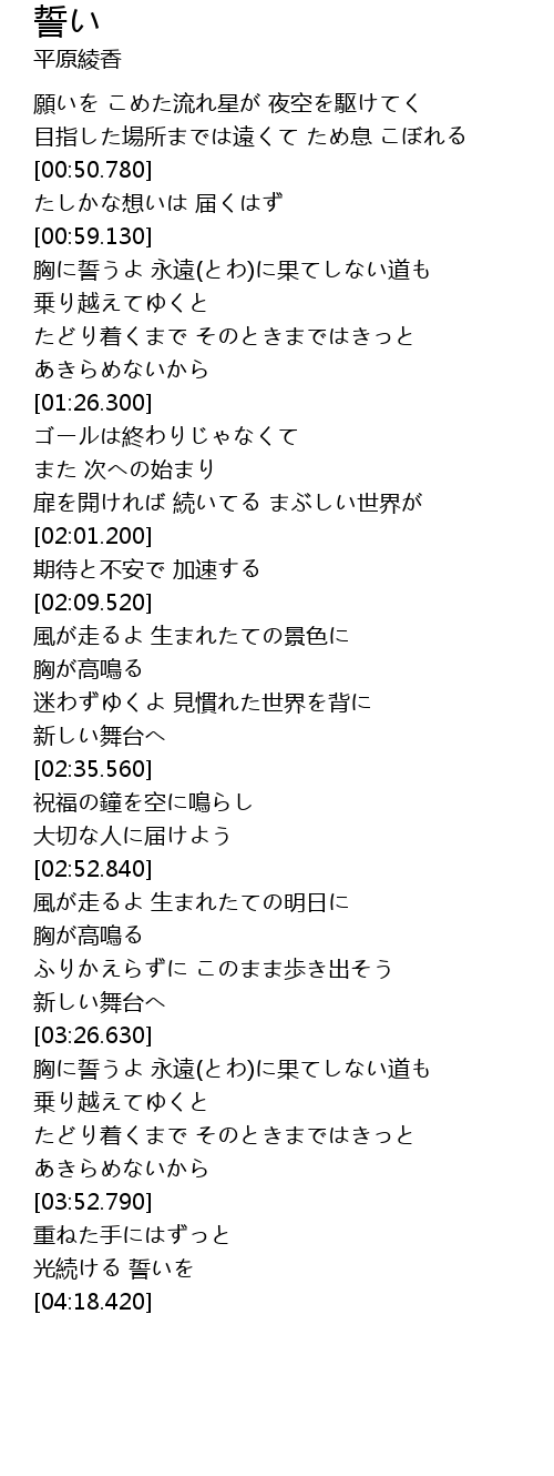 | [03:27.280] | 胸に誓うよ 永遠(とわ)に果てしない道も |