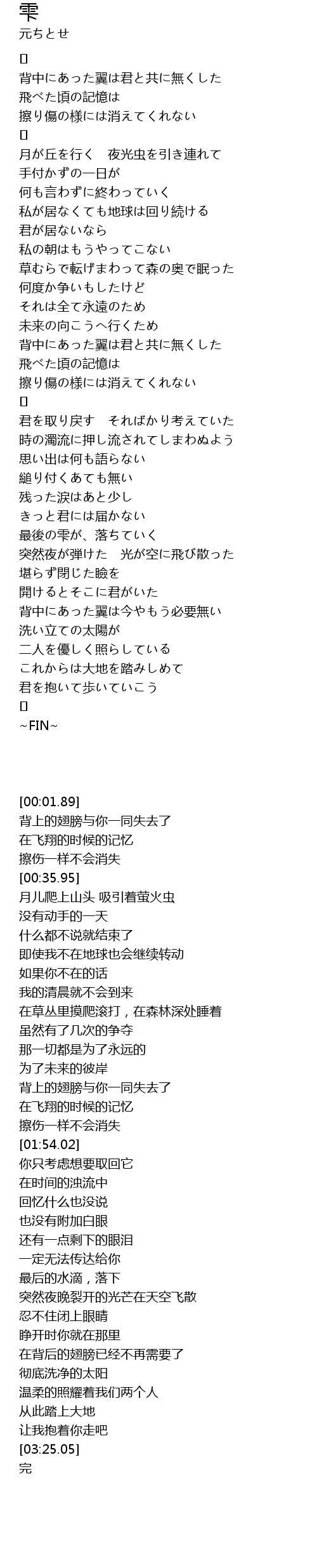 | [01:35.33] | 背中にあった翼は君と共に無くした |
