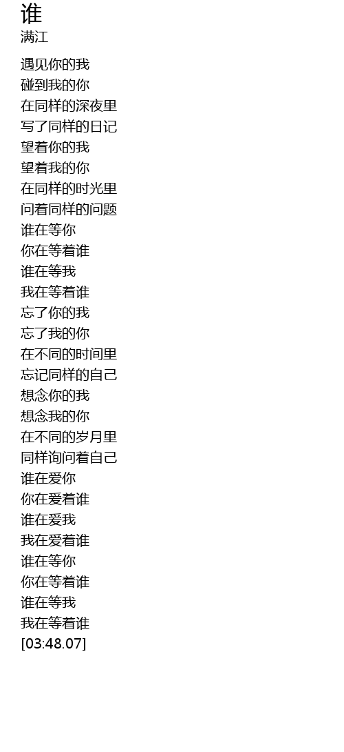 | [03:35.60] | wǒ zài děng zhe shuí |