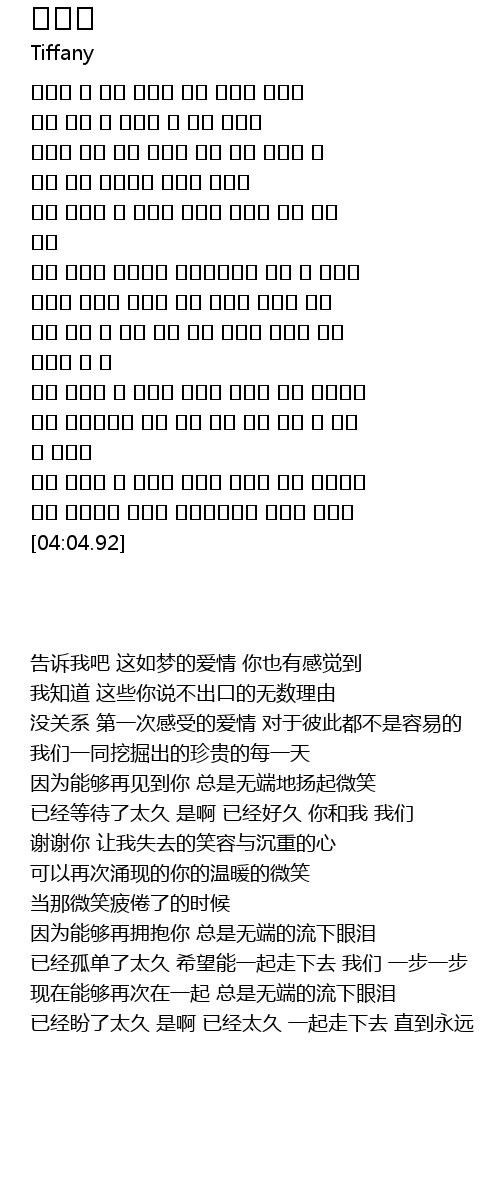 | [03:39.51] | 已经盼了太久 是啊 已经太久 一起走下去 直到永远 |