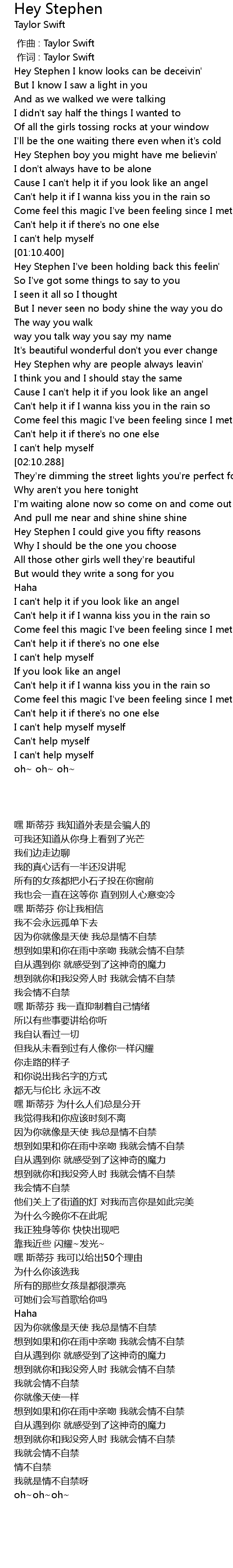 | [00:43.890] | 嘿 斯蒂芬 你让我相信 |