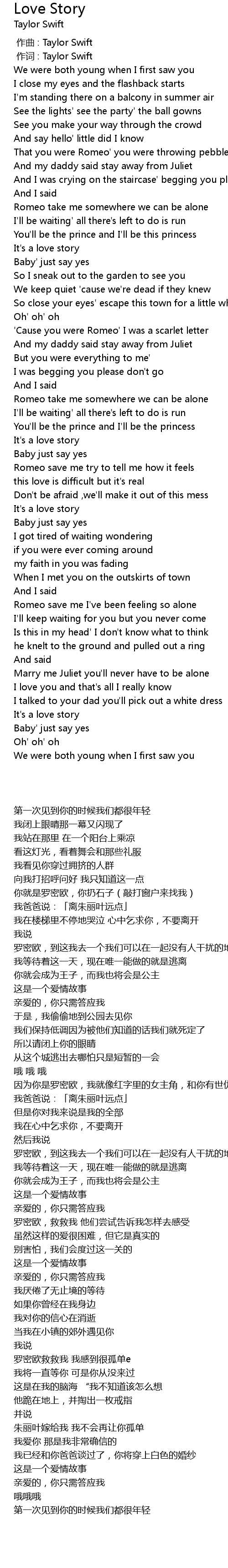 | [01:42.580] | 'Cause you were Romeo' I was a scarlet letter |