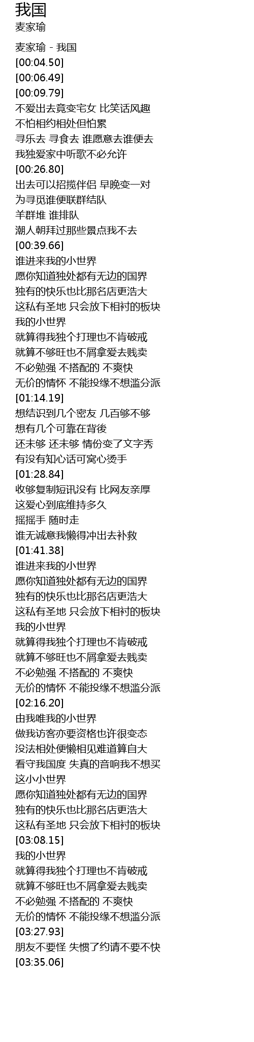 | [03:08.37] | 我的小世界 |