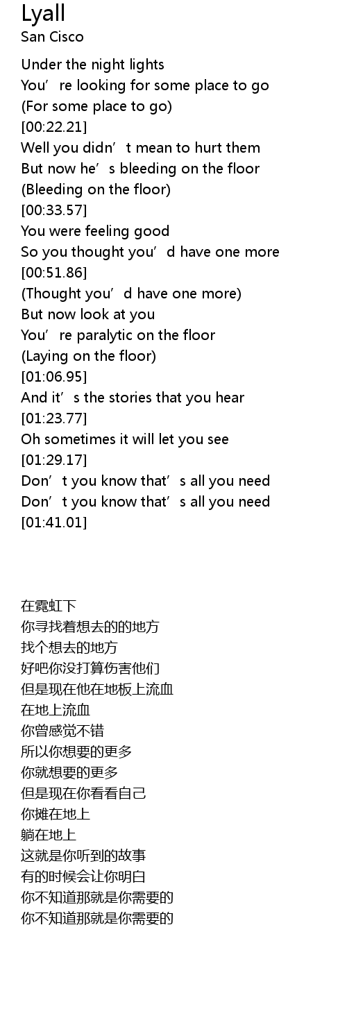 | [01:29.78] | Don' t you know that' s all you need |