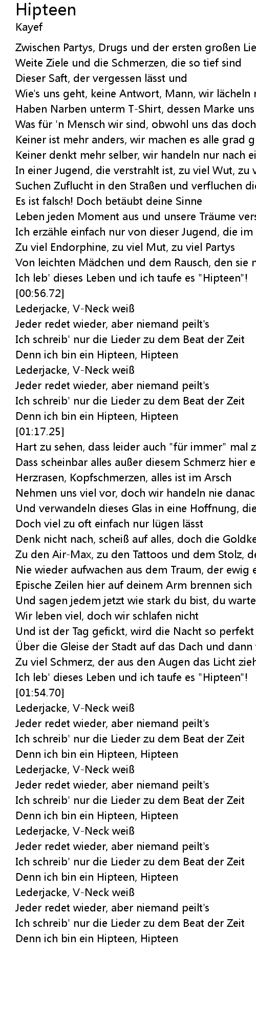 | [02:01.90] | Denn ich bin ein Hipteen, Hipteen |