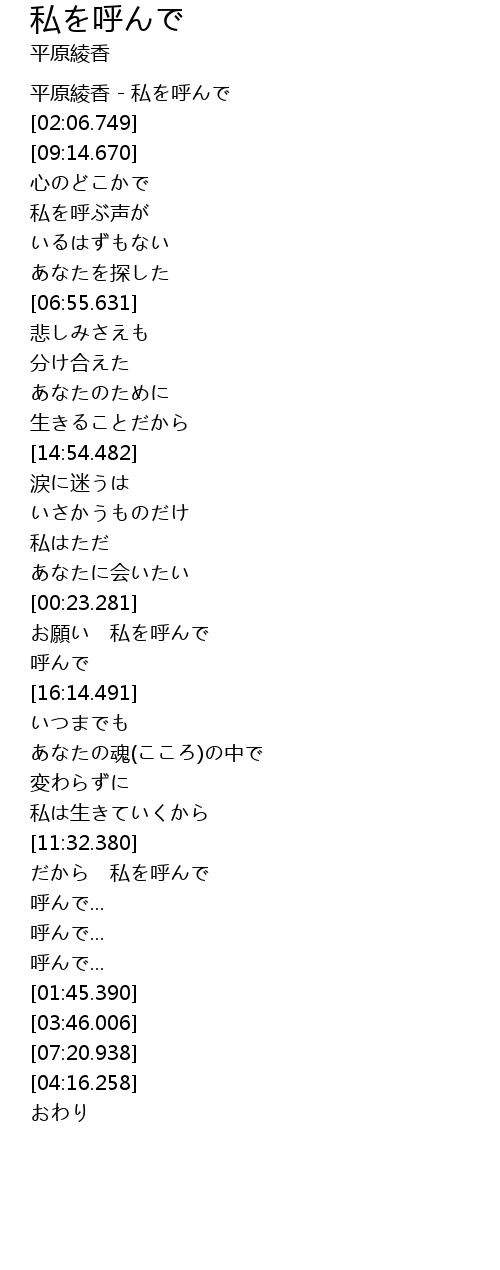 | [14:47.425] | 平原綾香 - 私を呼んで |