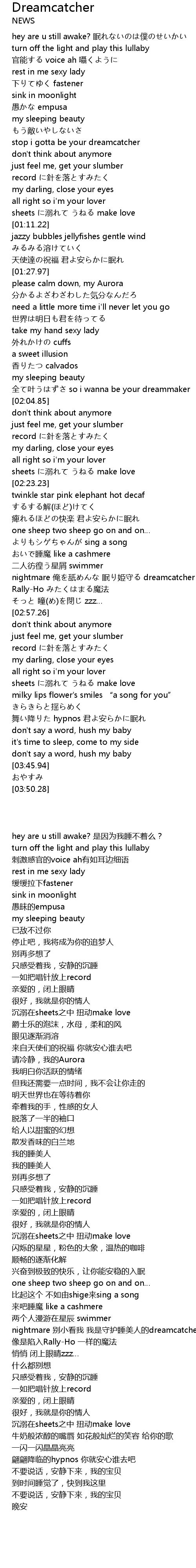 | [02:48.68] | nightmare an shi mian ji shou dreamcatcher |
