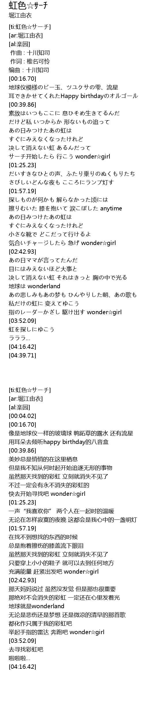 | [01:19.40] | 快去开始寻找吧 wonder☆girl |