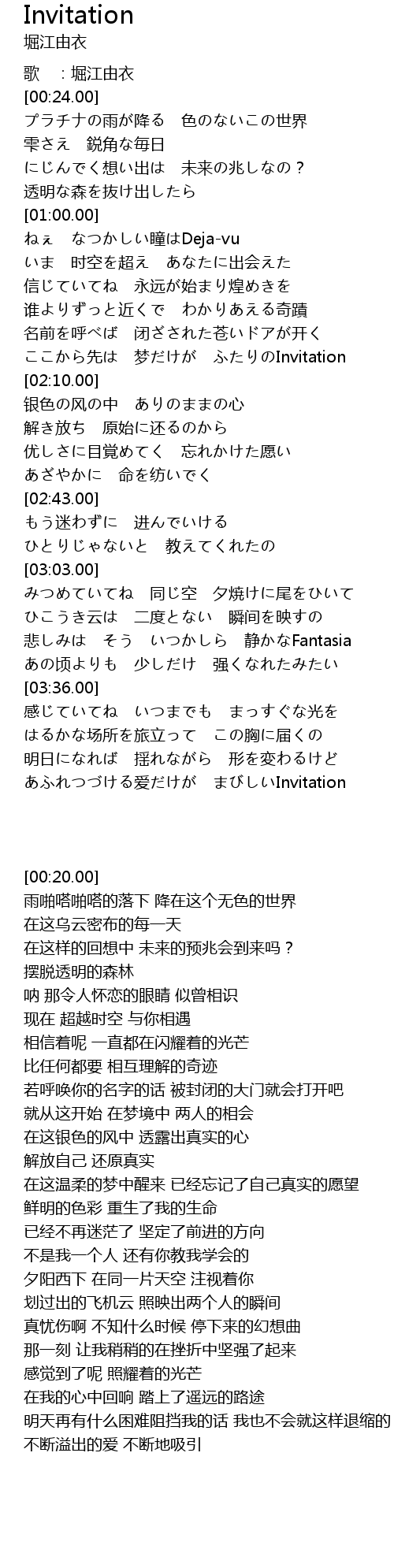 | [04:01.00] | あふれつづける爱だけが まびしいInvitation |
