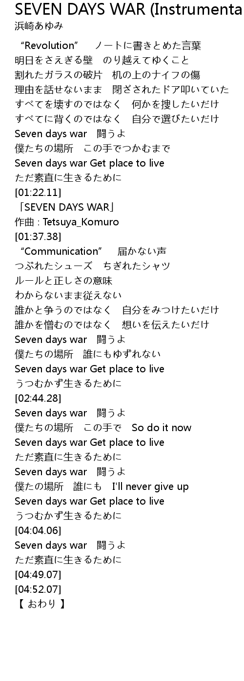 | [01:25.38] | 「SEVEN DAYS WAR」 |