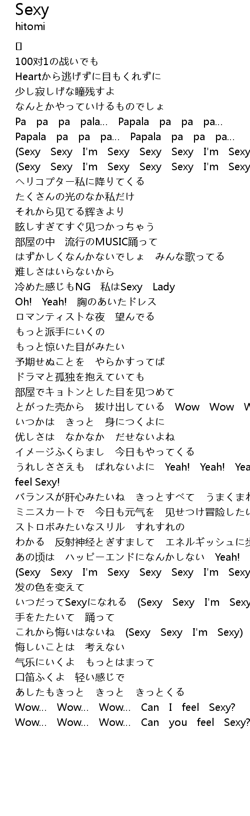 | うれしささえも ばれないよに Yeah! Yeah! Yeah! Yeah!…I feel Sexy! | |