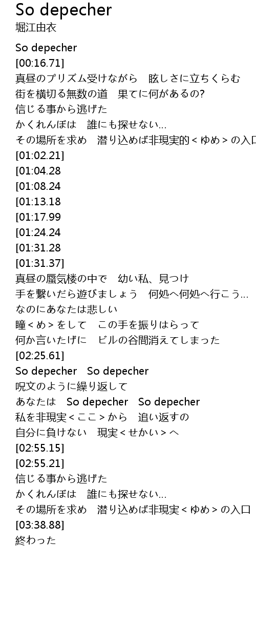 | [03:49.68][01:13.18] | 聞こえる So depecher So depecher |