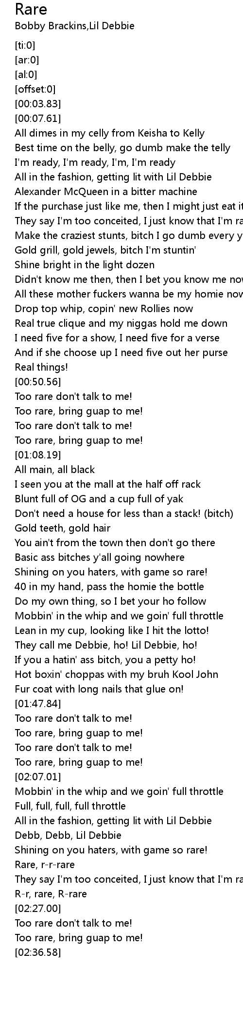 [01:37.95] They call me Debbie, ho! Lil Debbie, ho!