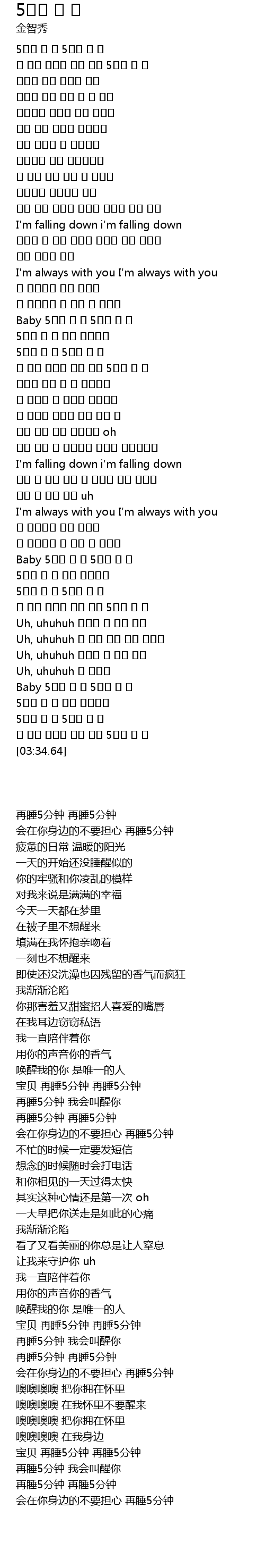 | [02:35.38] | 5분만 더 자 5분만 더 자 |