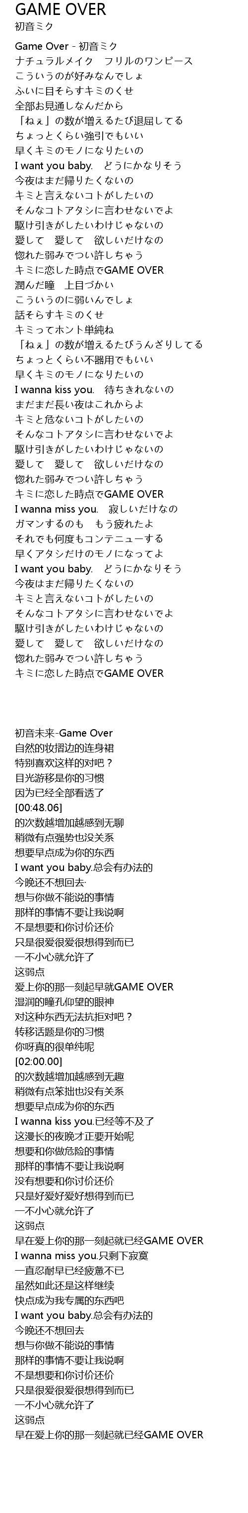 | [03:40.49] | liàn shí diǎn GAME OVER |