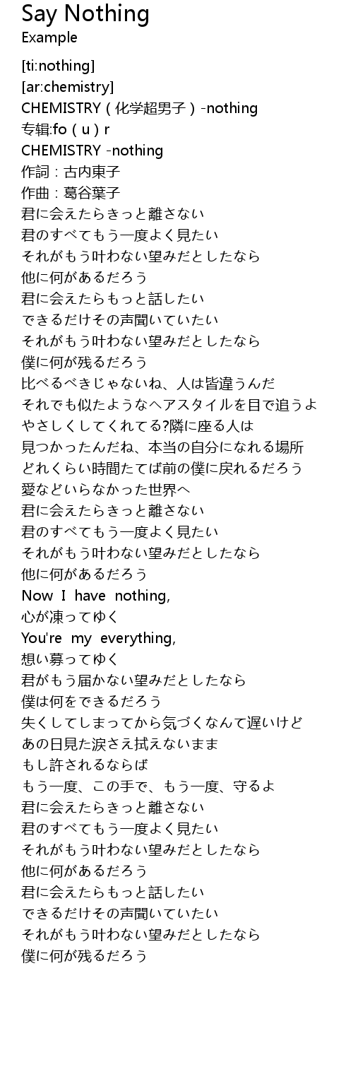 | [00:02.132] | CHEMISTRY(化学超男子)-nothing |